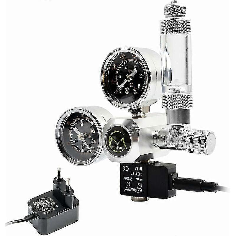 Aquarium CO2 Regulator with 12V Adapter, Aquarium Pressure Reducer, Dual Pressure Gauge Includes Bubble Counter and Check Valve, W21.8 Interface