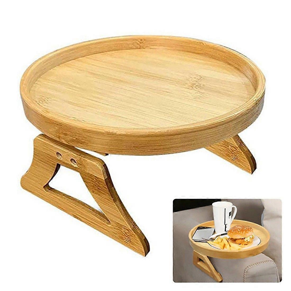 Portable: sofa arm tray is 9.8" (25cm) in diameter, and the sofa arm tray is foldable with a clip-on design to create a stable coffee table that folds up when not in use for easy portability and space saving. Sofa Arm Clip tray: Design with 2 spring-loaded arms, hold the table in place, instantly create a stable coffee table, suitable for round/square/curved sofa arms. Eco-Friendly: The sofa arm tray table is made of high quality pine wood, which is more environmentally friendly, practical, durable and textured than ordinary wood sofa tray. Multipurpose: The armchair table tray can be clipped to the armrest of a sofa or a recliner, ideal for daily use such as storing food, remote controls, books, electronics, etc., especially for elderly people with limited mobility. Easy to Use: This couch arm table is foldable. When in use, the clips on both sides can be directly opened and clamped on both ends of the sofa. When not in use, it can be folded for storage. Color: pine wood original wood color Weight: 350g Product size: 25*25*12.5cm Package includes: 1pc* wooden shelf