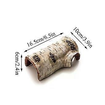Artificial Birch Log Hide Cave, Tortoise Bearded Dragon Small Animal Habitat, 16x10cm