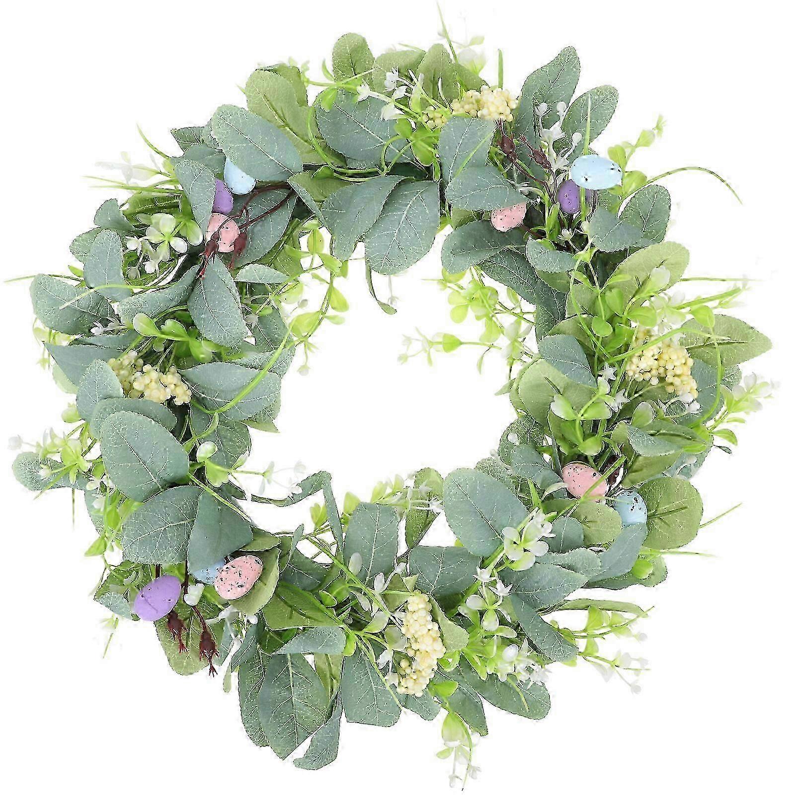 Artificial Easter Wreath for Front Door with Decorative Easter Eggs