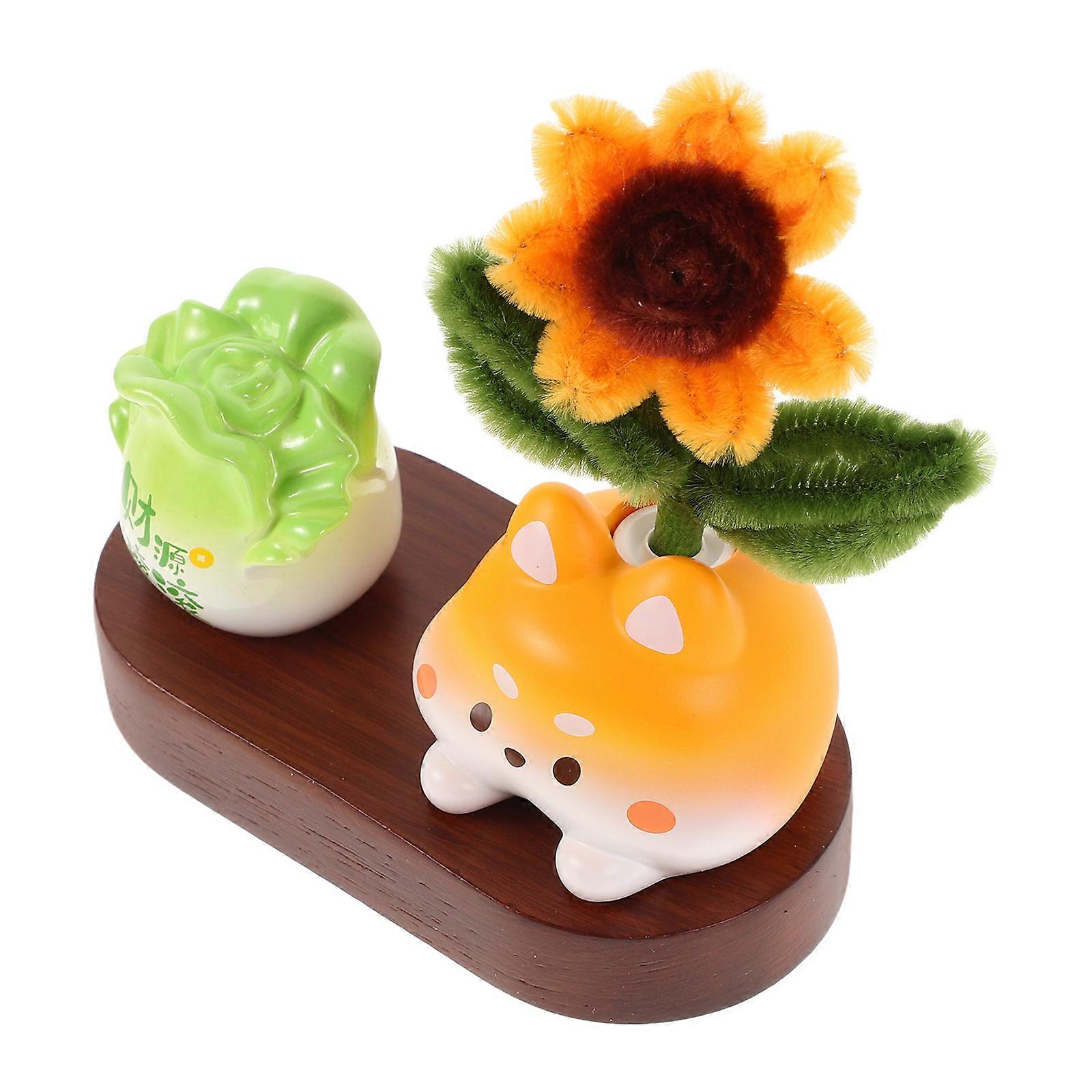 Artificial Flower and Animal Dashboard Ornaments for Car 4Pcs Set