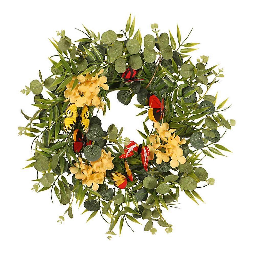 Artificial Leaf Wreath Spring Decoration Round Shape Plastic Material No Maintenance Required 1Set