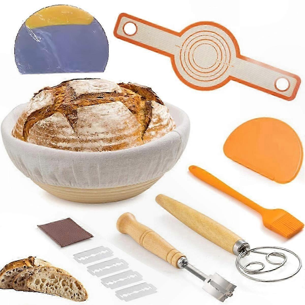 Artisan Bread Making Kit with Proofing Basket, Dough Scraper, Trimming Tool, and Egg Beater for Home Bakers