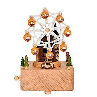 Artistic Wooden Desktop Clock Tower and Ferris Wheel Rotating Music Box Ornament For Tabletop Shelf Decors Display Gift