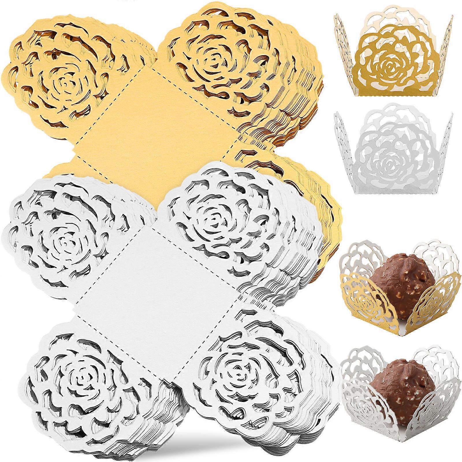Assorted Color Chocolate Wrappers with Hollowout Rose Design Paper Cups for Storage and Party Use 100Pcs