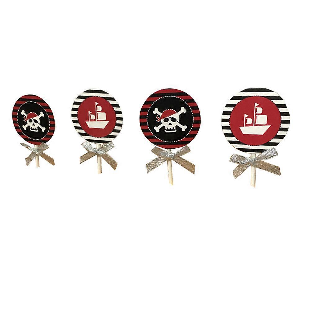 Assorted Color Disposable Cupcake Toppers 50 Pcs for Halloween Party Favors in Pirate Skull and Boat Shapes
