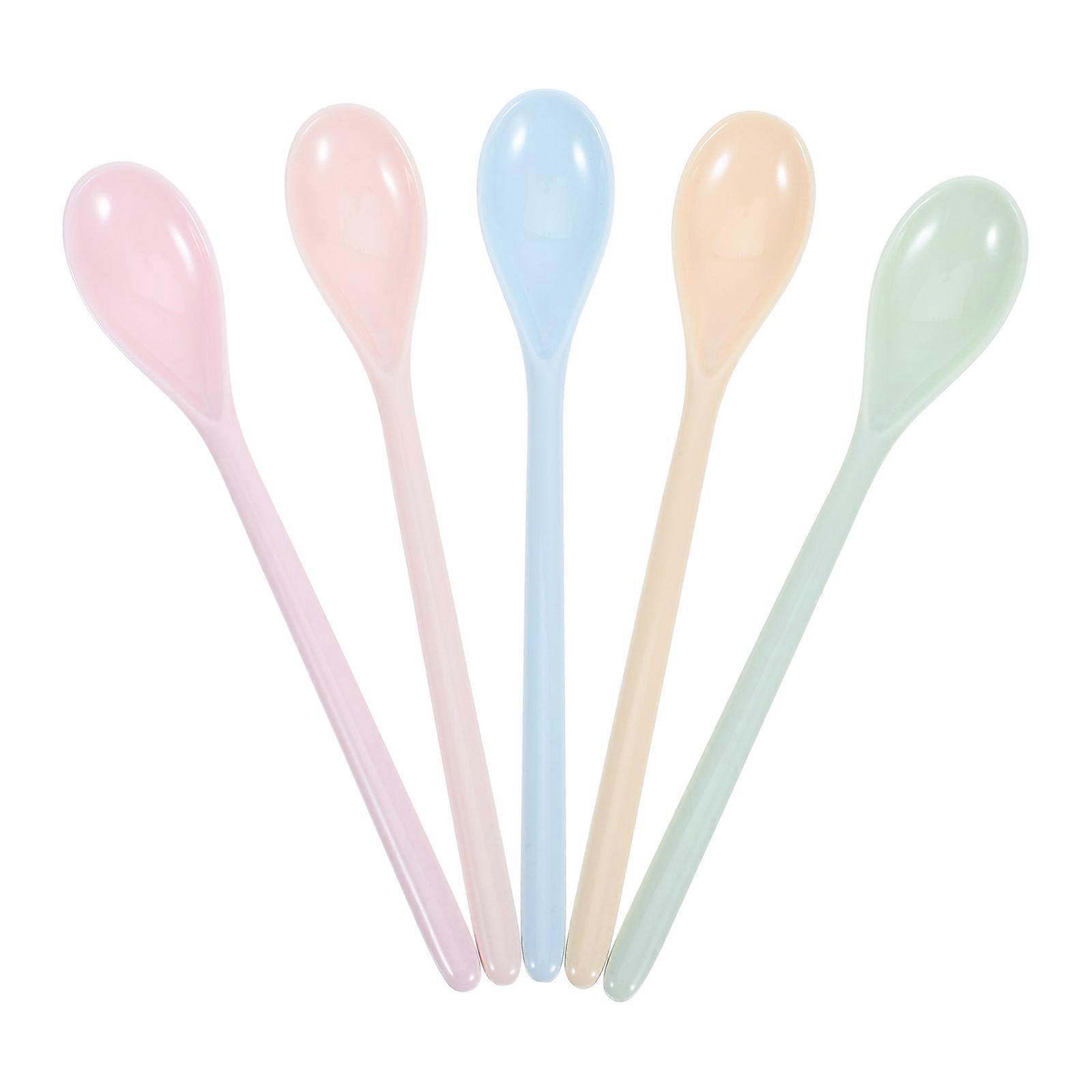 Crafted from plastic, these long-handle spoons are suitable for children learning to eating independently. The drop-resistant design ensures they can withstand rough handling, making them ideal for both home and kindergarten use. The creative solid color design adds a playful element to mealtime, encouraging children to enjoy their food. Features -Color:Assorted Color -Material:Plastic -Size:18.50X2.90X0.50cm/7.27X1.14X0.20in -High durability: made from plastic, these spoons are dropresistant and , ensuring they won't easily break -Childfriendly design: the solid color design of the spoons captures the attention of babies, encouraging their interest in eating and making mealtime more enjoyable -Long handle for easy use: the long handle design allows children to easily stir their food, enhancing their independence -Versatile usage: suitable for home and kindergarten settings, these spoons meet various dining needs, making them convenient for different environments -Safety assured: designed to ensure the safety of children during meals, these spoons are sturdy and reliable, reducing the risk of accidents Package list: 5 x spoon