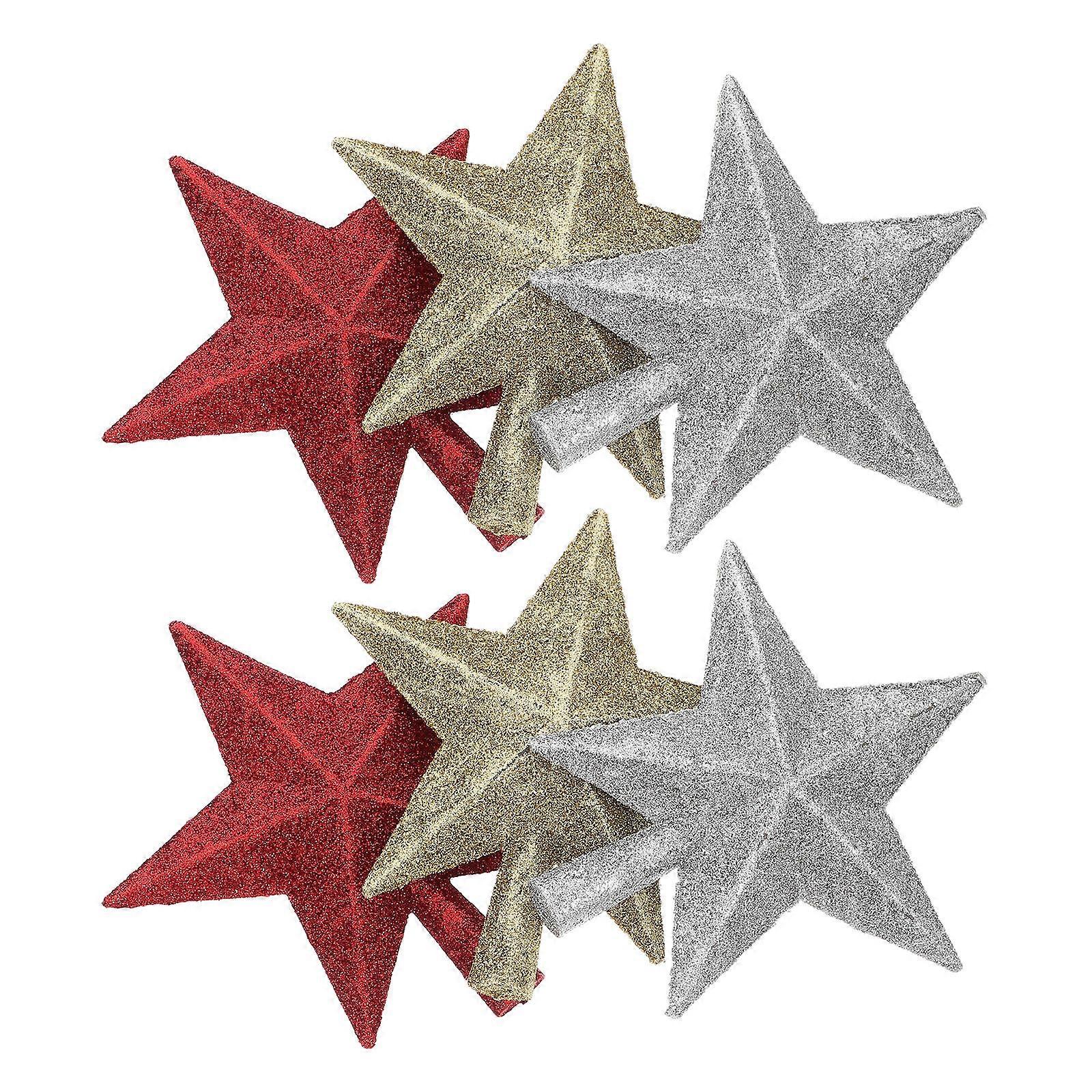 Assorted Color Star Tree Toppers for Holiday Decoration 6Pcs Glittered Plastic