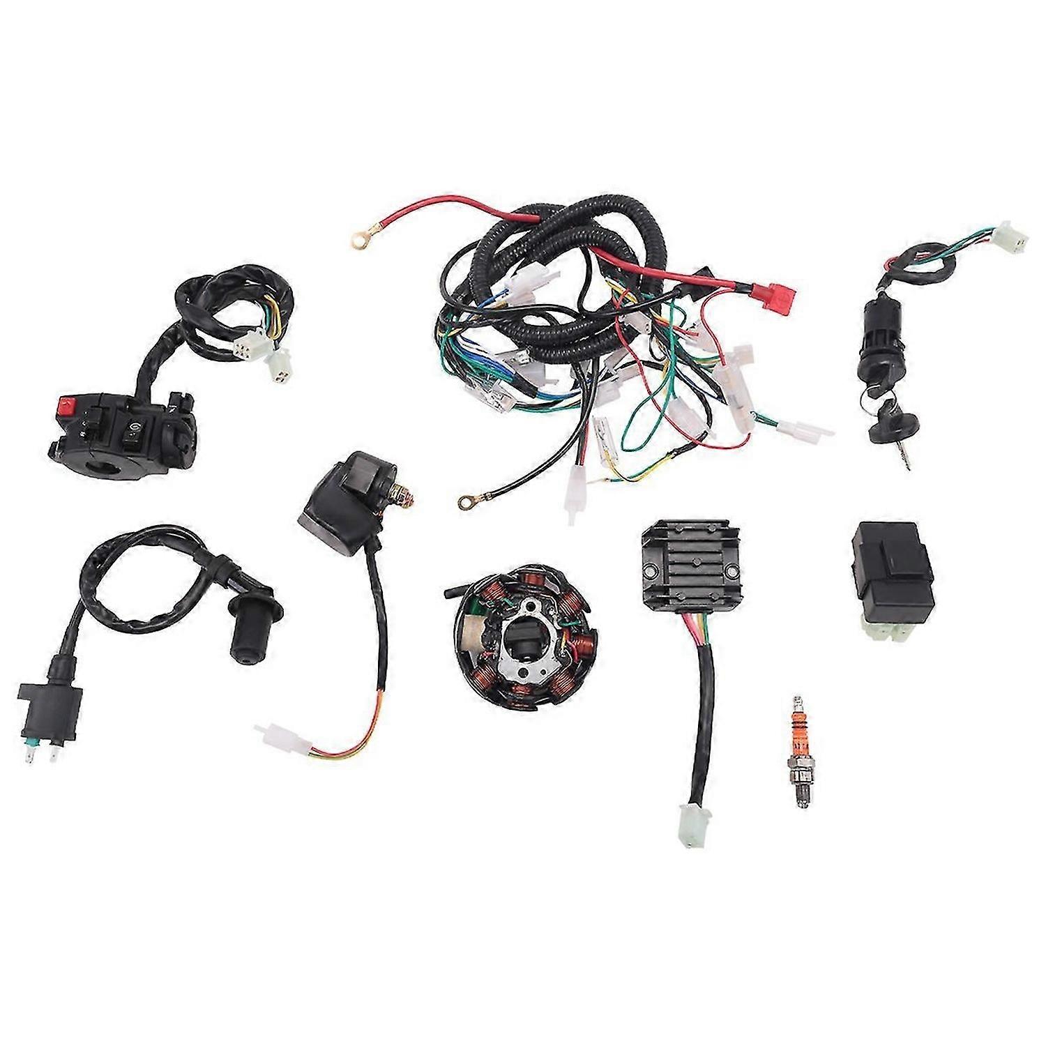 ATV Wiring Harness Kit, with CDI Stator Regulator Ignition Switch Solenoid Relay for GY6 125Cc 150Cc