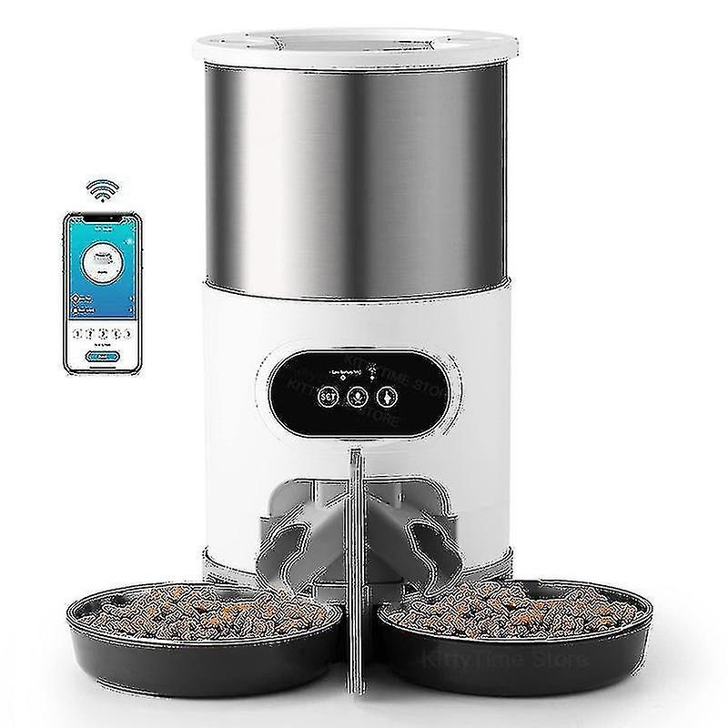Automatic cat feeder pet dry food dispenser double bowl for two cats and puppies with wifi timed fee