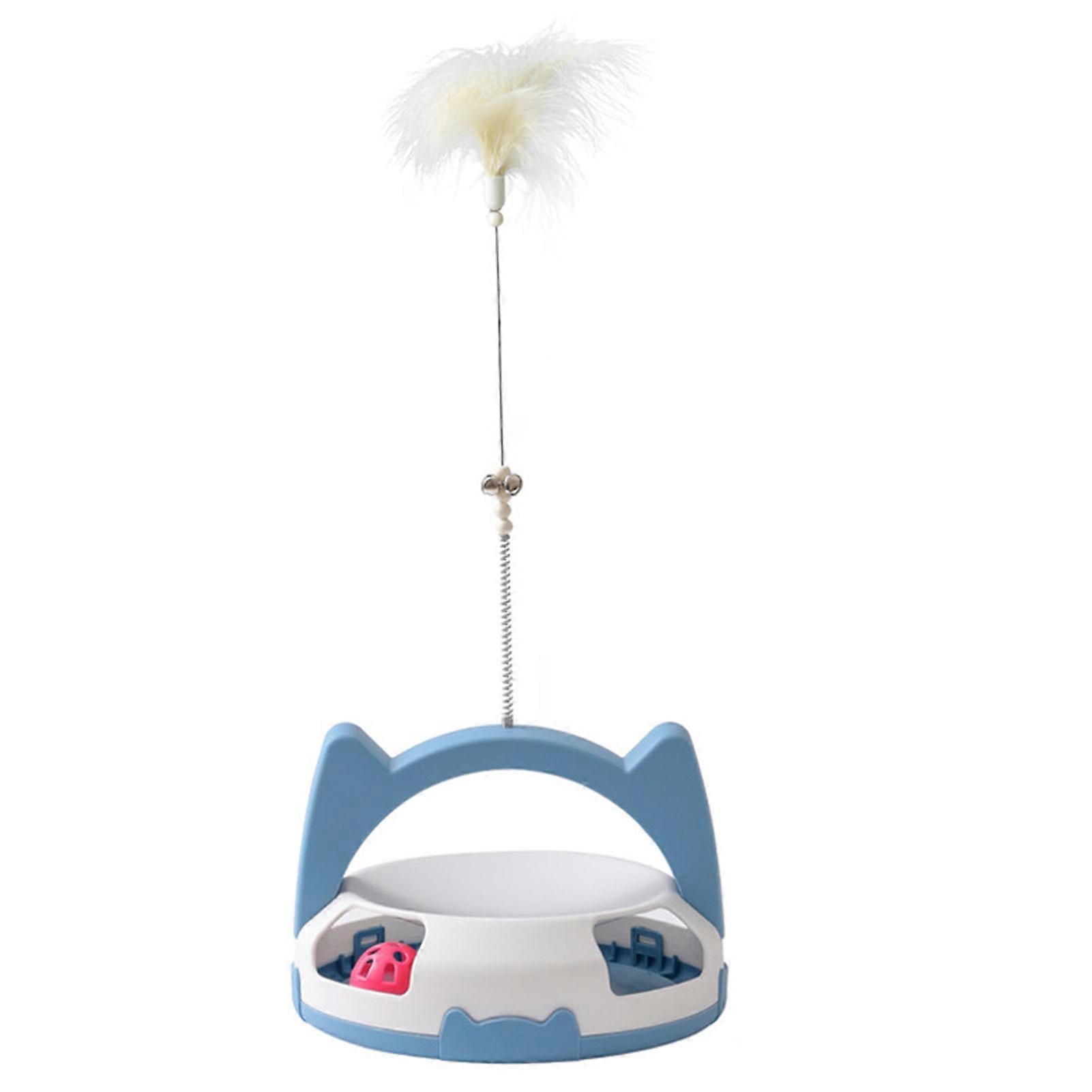 Automatic Rotating Feather Toy Bite Resistant Relieve Boredom Cat Teaser Toys with Roller Tracks Ball for Cats Kitten Blue