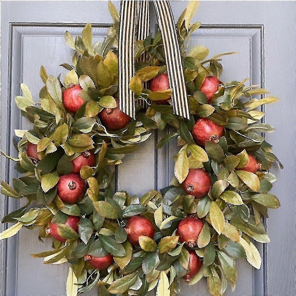 Autumn Fall Front Door Wreath Artificial Pomegranate Fruit Ribbon Bow Realistic Greenery Garland Hanging Onrmanet