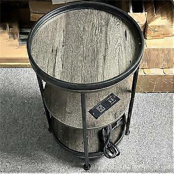 AWD Side Table 3-Tier Round End Table with US Plug Power Outlets, 380x610mm