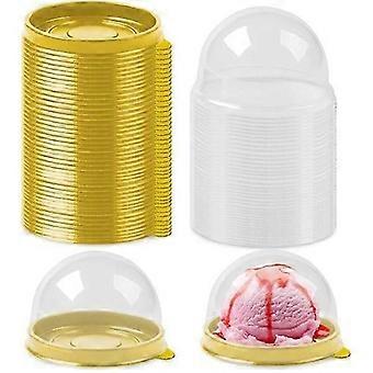 100pcs साफ़ प्लास्टिक मिनी केक बॉक्स मफिन बॉक्स शादी जन्मदिन उपहार बॉक्स (2 इंच) (सोना)