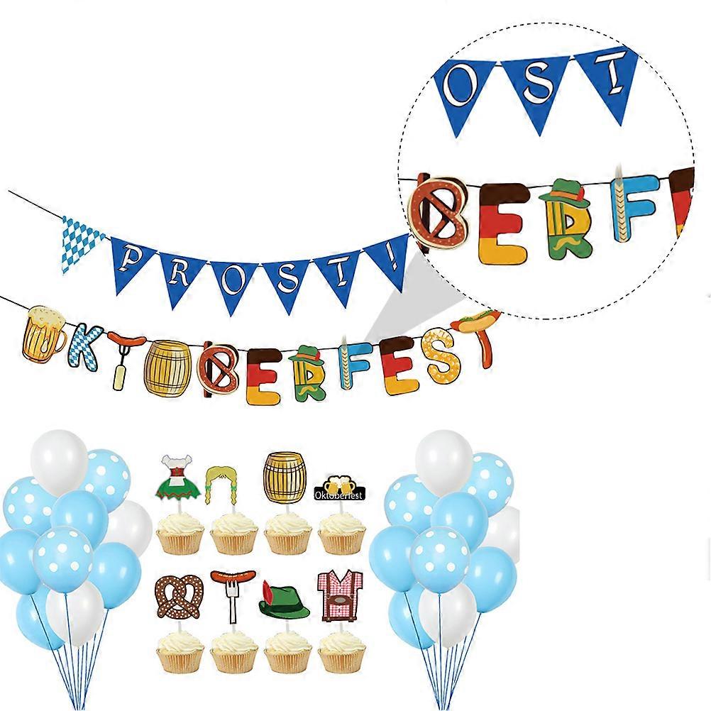 Balloons Cake Toppers Oktoberfest Bunting Balloon Cake Topper Set Assorted Color Round Balloons Festive Design 27Pcs
