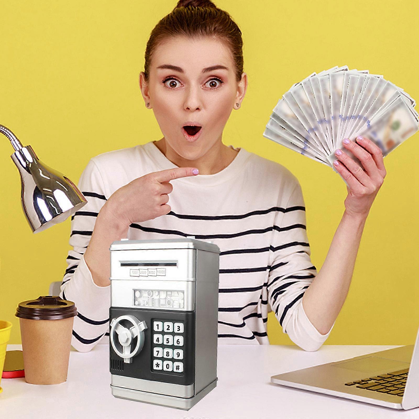 Banking Play Toys For Kids, Mini ATM Auto Scroll Paper Coin Bank Money Saving Box With Password, Cashes & Coins Saving Box For Boys And Grils Gifts To