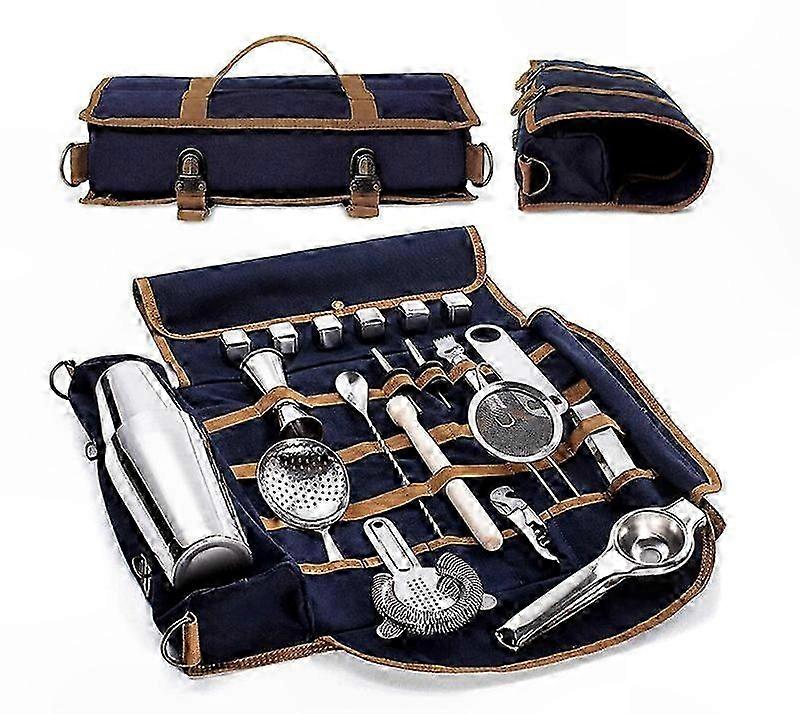 Bartending Kit with Canvas Storage Bag for Utensils and Tools Shockproof Design One Shoulder Carry Bartender Accessory Organizer