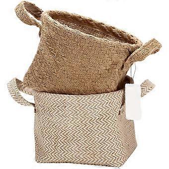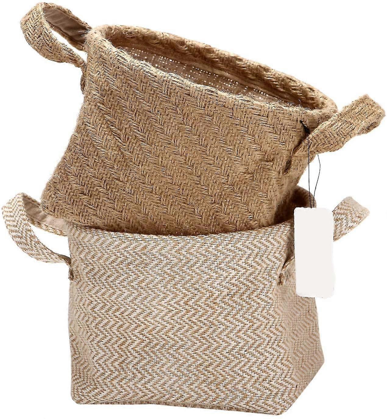 Baskets Organizer Box Bins In Jute And Cotton Linen Foldable With Handle 14 * 17 * 16cm 2pcs Lh-1