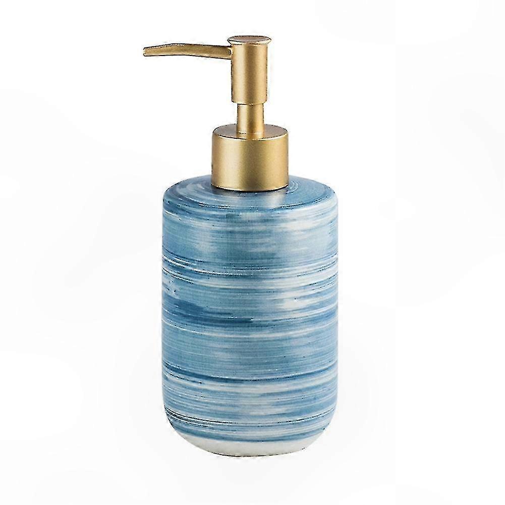 Bathroom Soap Dispenser Set - Ceramic Lotion Pump Container in Blue