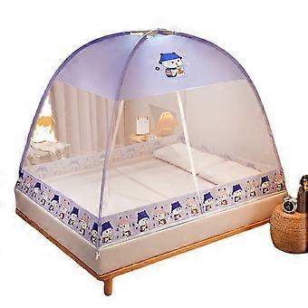 Bed Mosquito Net Zipper Closure Breathable Double Door Cartoon Tent Mosquito Net with Bottom for Dormitory Child Room Dustproof Top Bear Blue 180x200c