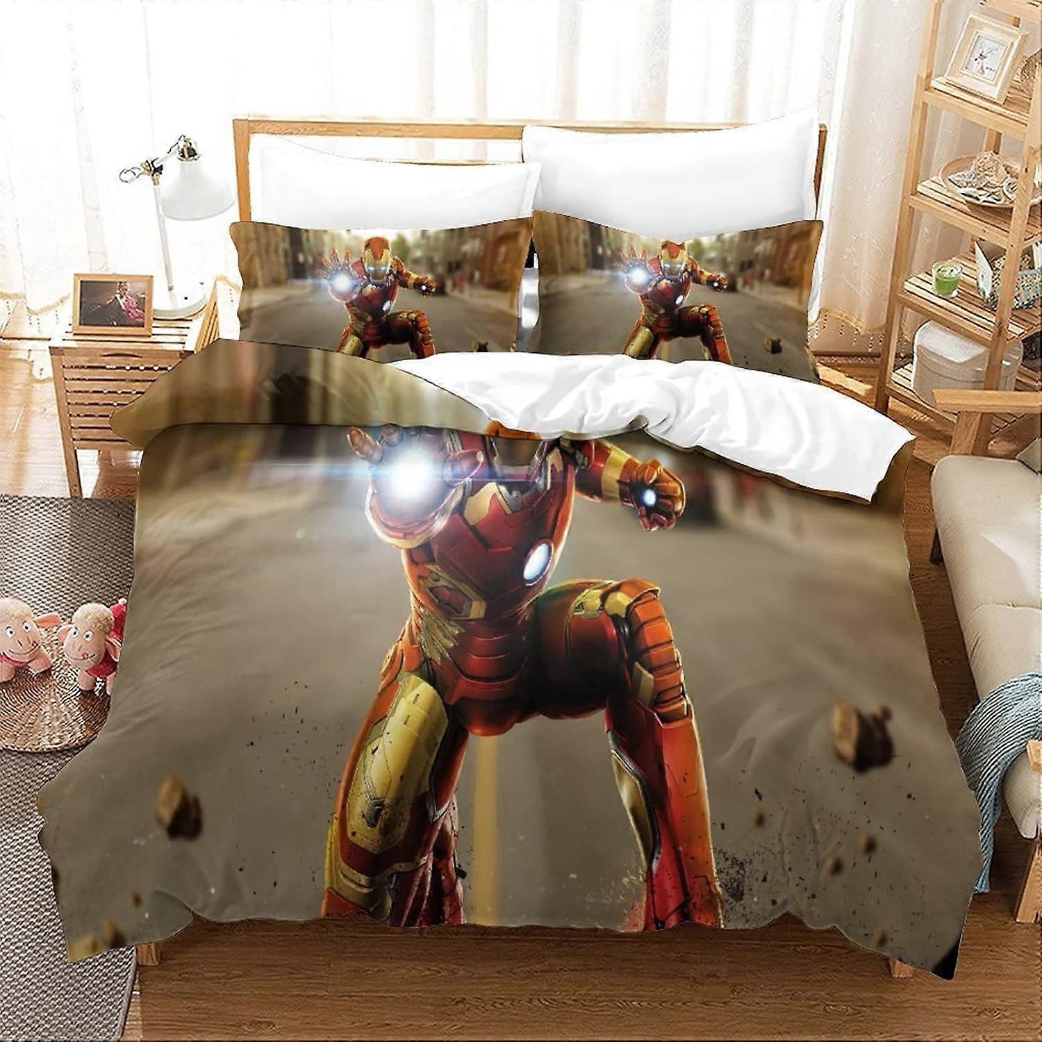 Bedding Double Bed Set Iron Man Printed Double Size Bedding Sets Super Soft Microfiber Duvet Covers with Zipper with Pillowcases Hypoallergenic 140x20
