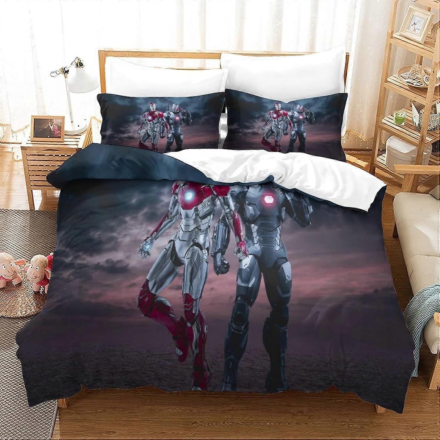 Bedding Double Bed Set Iron Man Printed Double Size Bedding Sets Super Soft Microfiber Duvet Covers with Zipper with Pillowcases Hypoallergenic 140x20