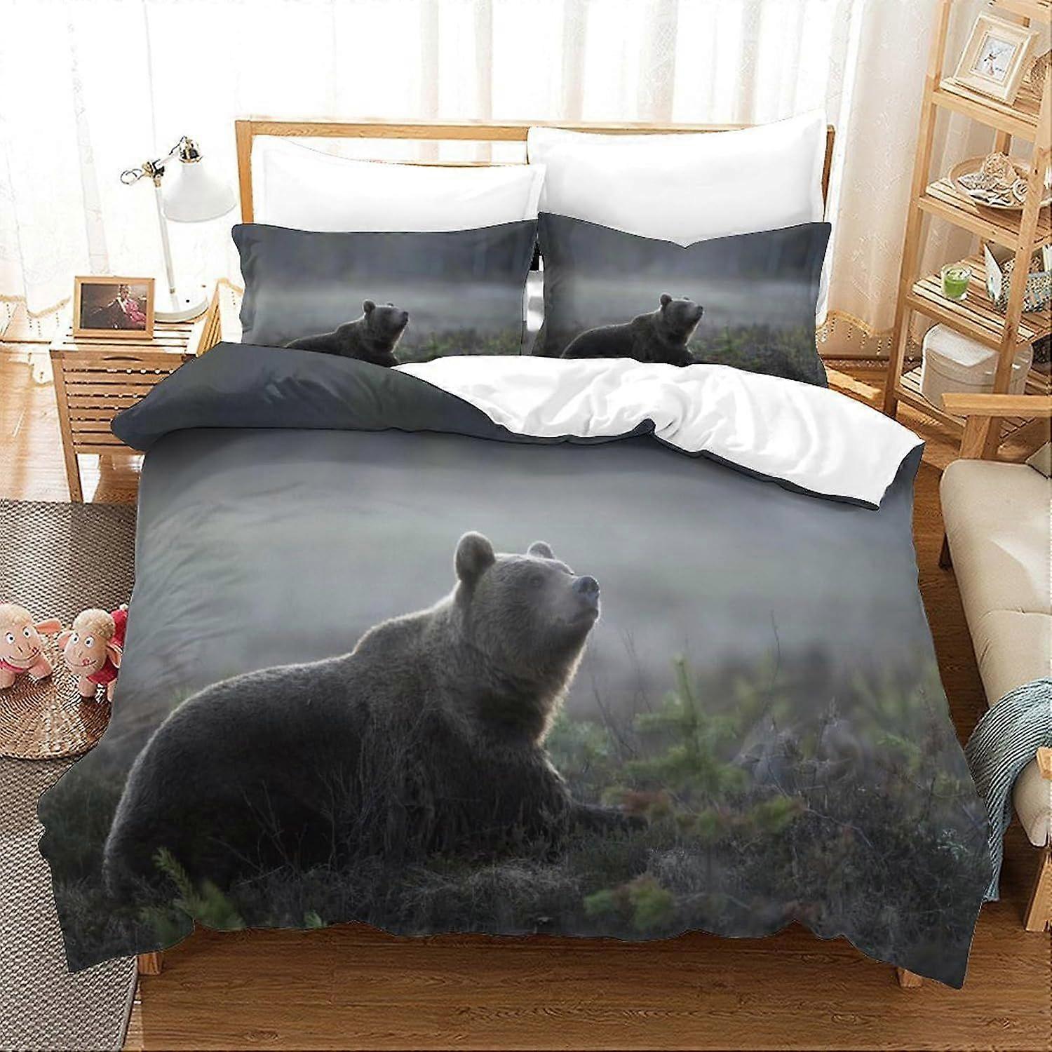 Bedding Grizzly Printed Bedding Set Single Size Duvet Cover Super Soft Breathable Microfiber Quilt Cover with Pillowcase with Zipeer Closure Hypoaller