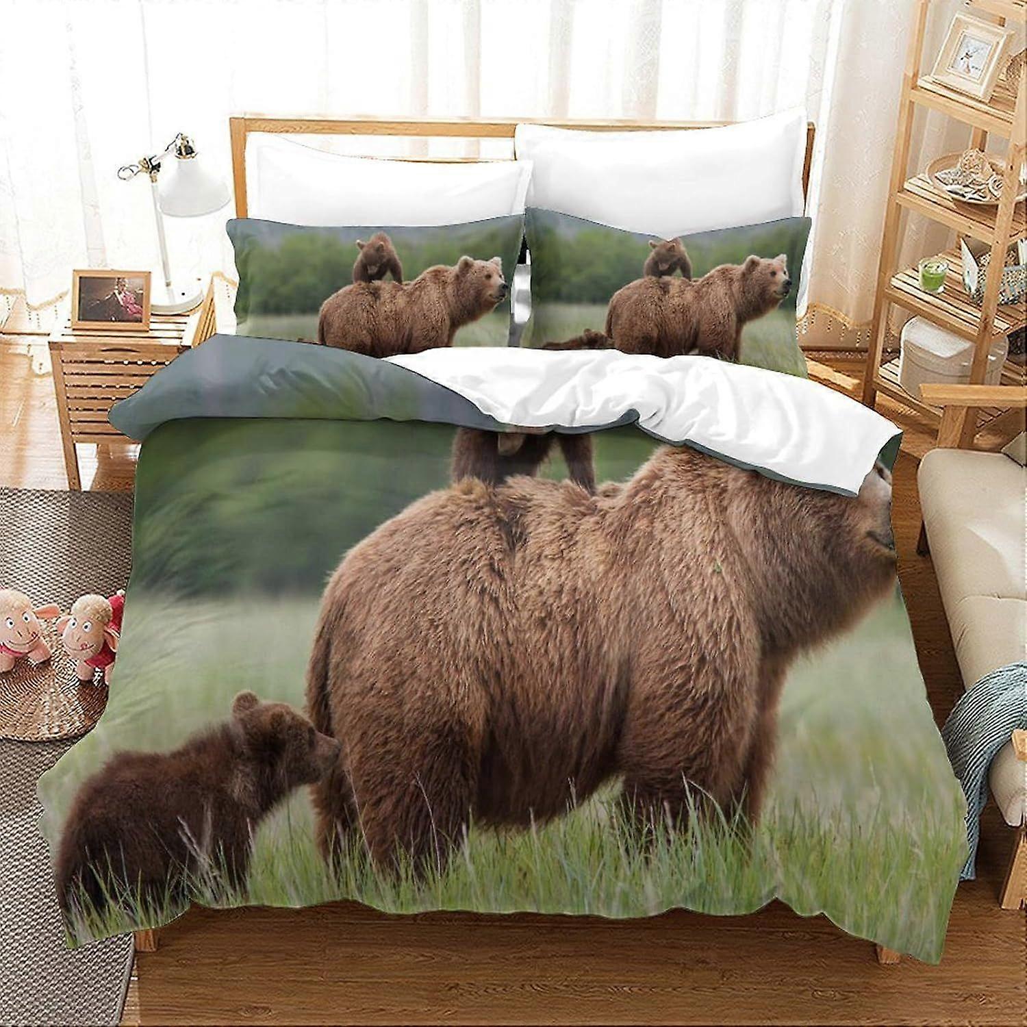 Bedding Grizzly Printed Bedding Set Single Size Duvet Cover Super Soft Breathable Microfiber Quilt Cover with Pillowcase with Zipeer Closure Hypoaller