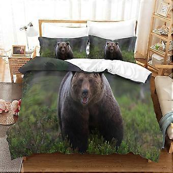Bedding Grizzly Printed Bedding Set Single Size Duvet Cover Super Soft Breathable Microfiber Quilt Cover with Pillowcase with Zipeer Closure Hypoaller