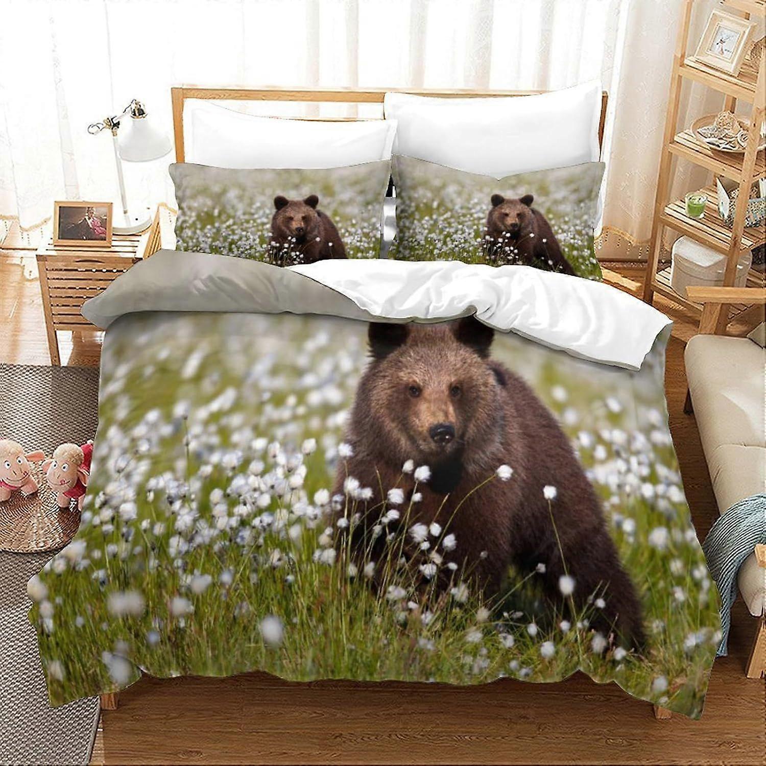 Bedding Grizzly Printed Bedding Set Single Size Duvet Cover Super Soft Breathable Microfiber Quilt Cover with Pillowcase with Zipeer Closure Hypoaller