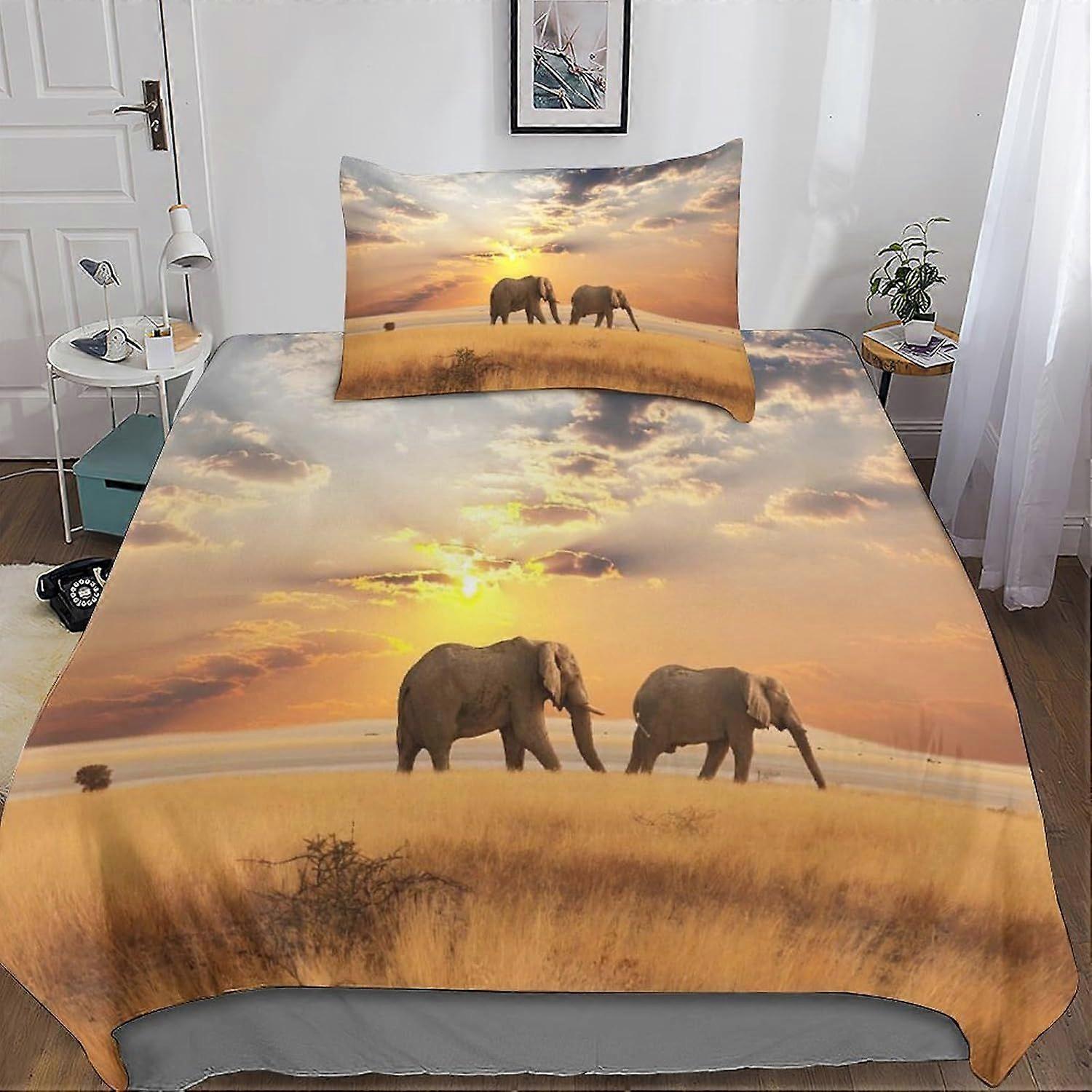 Bedding Single Bed Set Elephant Printed Duvet Cover Super Soft Microfiber Bedding Set with Zipper with Pillowcases Quilt Cover Hypoallergenic for in K