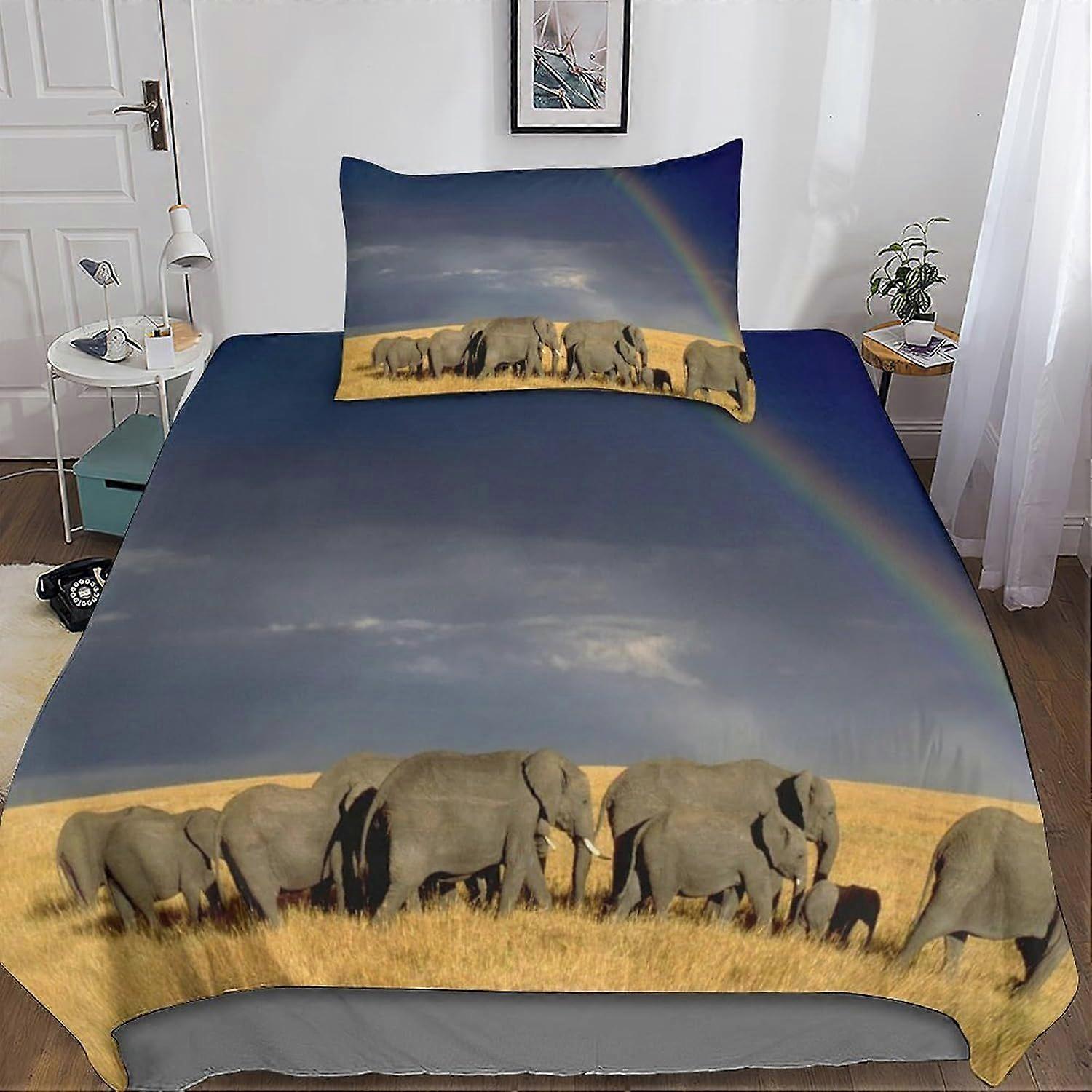 Bedding Single Bed Set Elephant Printed Duvet Cover Super Soft Microfiber Bedding Set with Zipper with Pillowcases Quilt Cover Hypoallergenic for in K