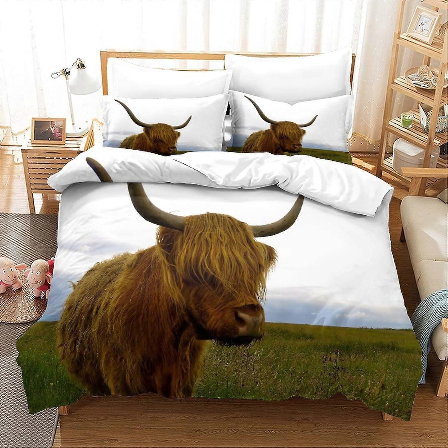 Bedding Single Bed Set Highland Cow Printed Single Size Bedding Sets Super Soft Microfiber Duvet Covers with Zipper with Pillowcases Hypoallergenic 14