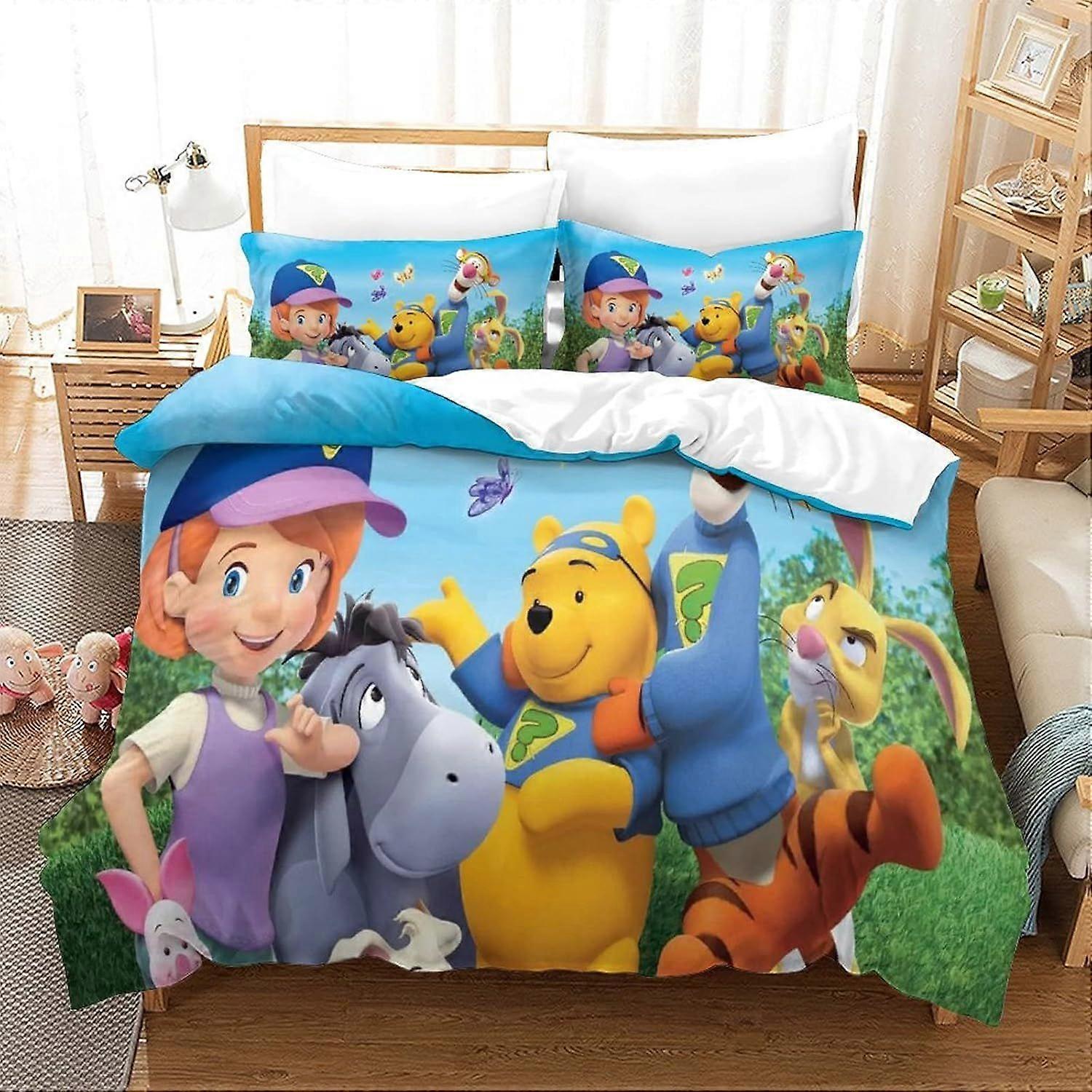Bedding Single Bed Set Winnie The Pooh Printed Single Size Bedding Sets Super Soft Microfiber Duvet Covers with Zipper with Pillowcases Hypoallergenic