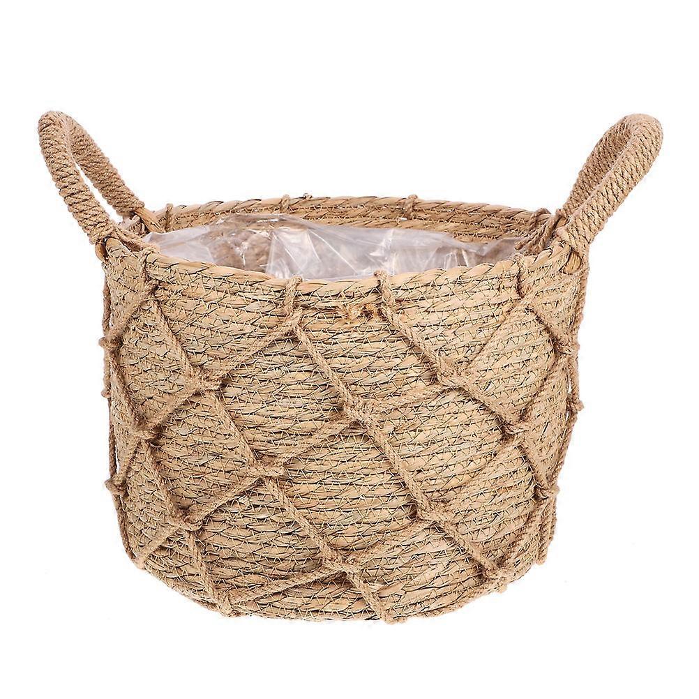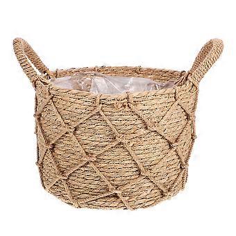 Beige HandWoven Flower Basket with Handle for Daily Use Portable Multipurpose Straw and Hemp Rope 12.5x9.5x9 Inches