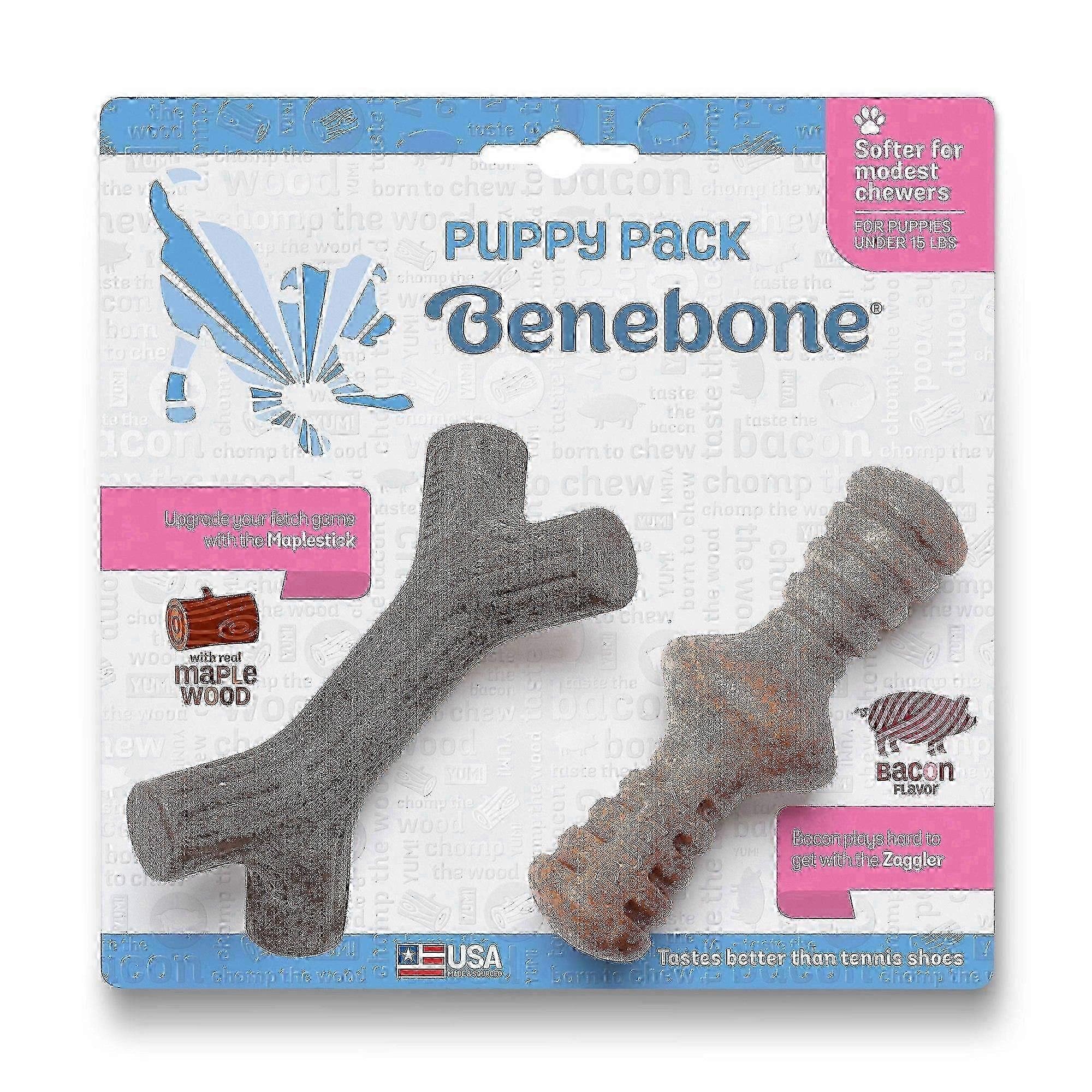 Benebone Puppy Pack Dog Chew Toys, Maple Wood/bacon, Xs, 2 Ea