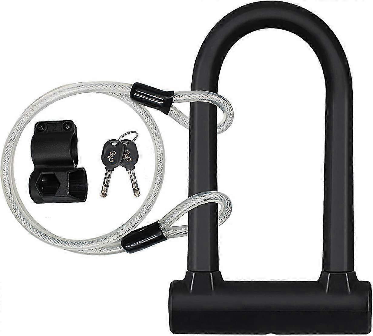 U-shaped padlock is made of hardened steel so that it is not easy to cut and pry attack. The lock core is made of C grade pure copper, which can be professional anti-theft to give you high quality bicycle security in all areas.ALL-OVER PROTECTION: The bicycle lock comes with an extremely durable braided steel cable for extra protection and a double layer of security. The steel cable is suitable for bicycles, motorcycles, gates and fences, etc.Portable and save space: The mounting bracket on the bike can fix the U-lock and remove it at any time. Convenient premium mounting bracket means your padlock goes with you, no need for additional packaging. No more worrying about leaving home without your bike lock.The U-shaped bicycle lock is covered with a layer of silica gel, which can effectively prevent the paint of the bicycle from being damaged. Provides security for your property.Bike lock with 2 laser cut keys, you never have to worry when you lose one.