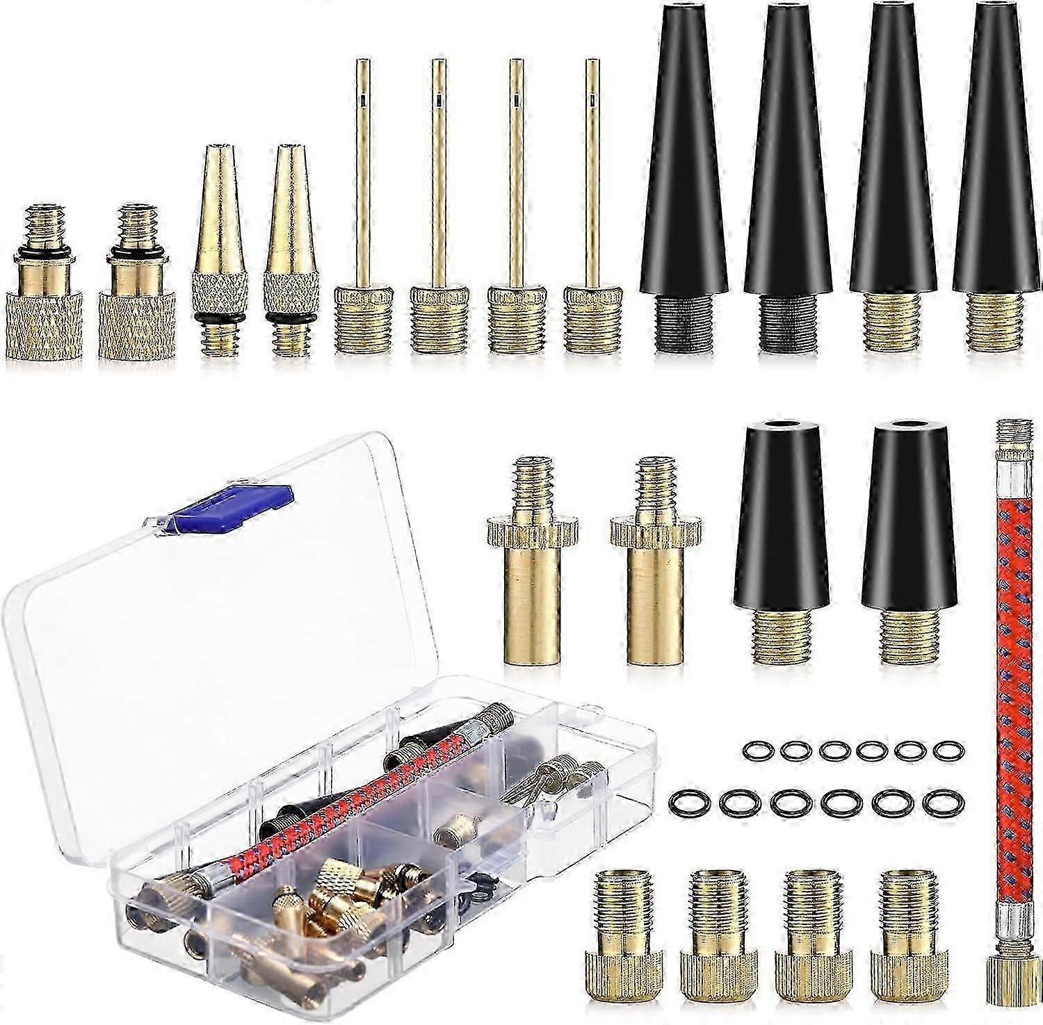 Bicycle Pump Nozzle,33 Pieces Balloon Inflator Nozzle,DV SV AV Bicycle Pump Adapter with Storage Box,Valve Adapter with Inflator Hose,for Bicycle P202