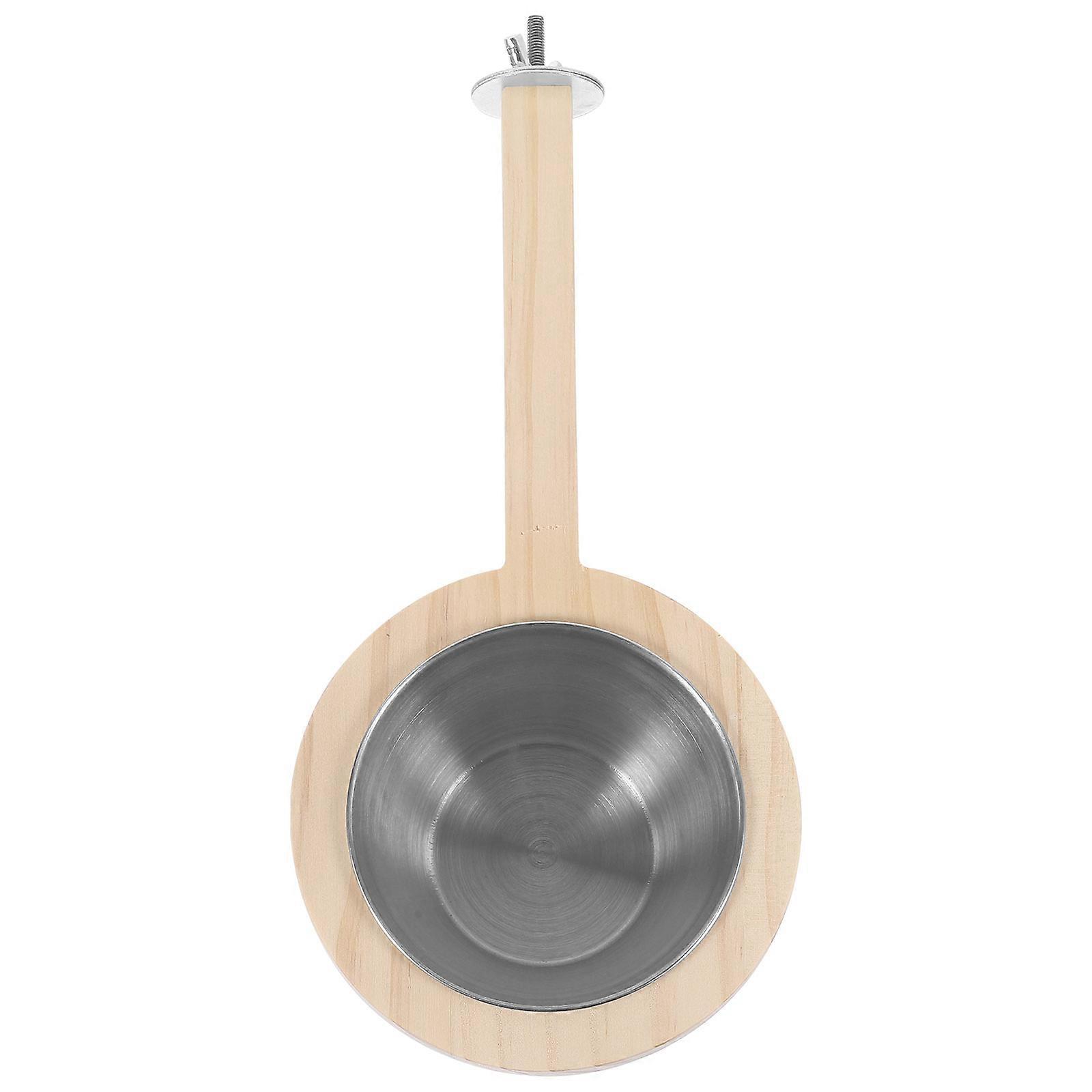 Bird Cage Mounted Parrot Feeder With Wood Perch For Bird Care Round Shape Simple and Elegant Design 1Set