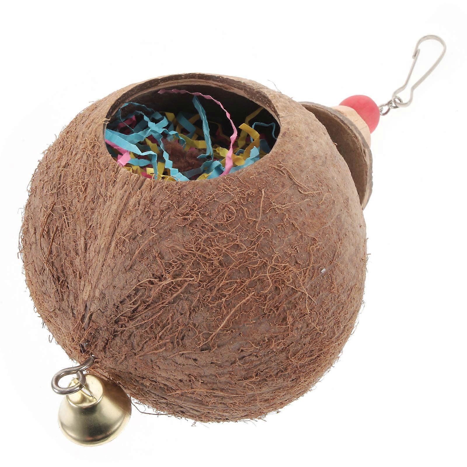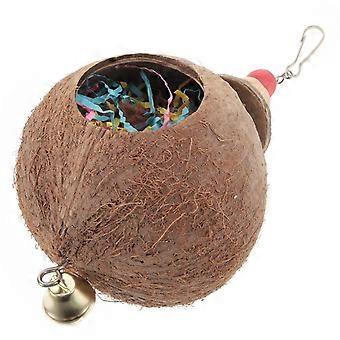 Bird Parrot Coconut Shell Swing Toy Drawbench Wire Cage Hanging Chew Toy