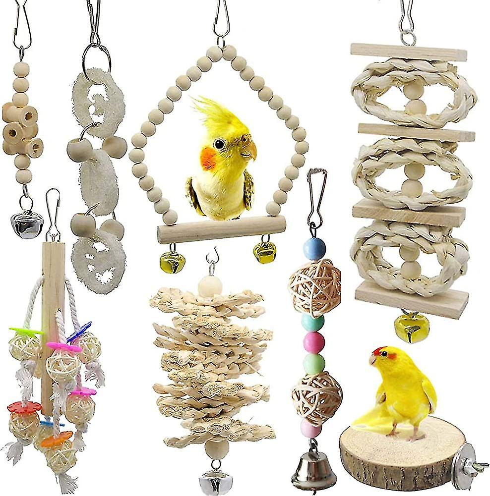 Bird Toys For Parrots 8 Pack Bird Chew Toys With Lmell Perches Bells And Swing @bugu