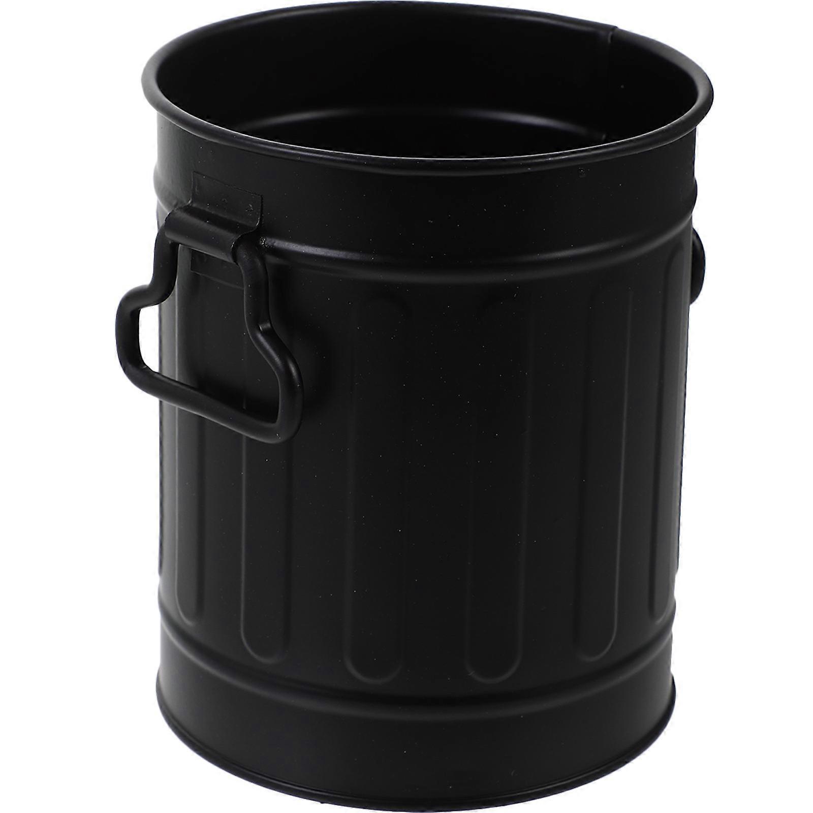 Black Iron Desktop Trash Can for Storage Simple Style Desk Container