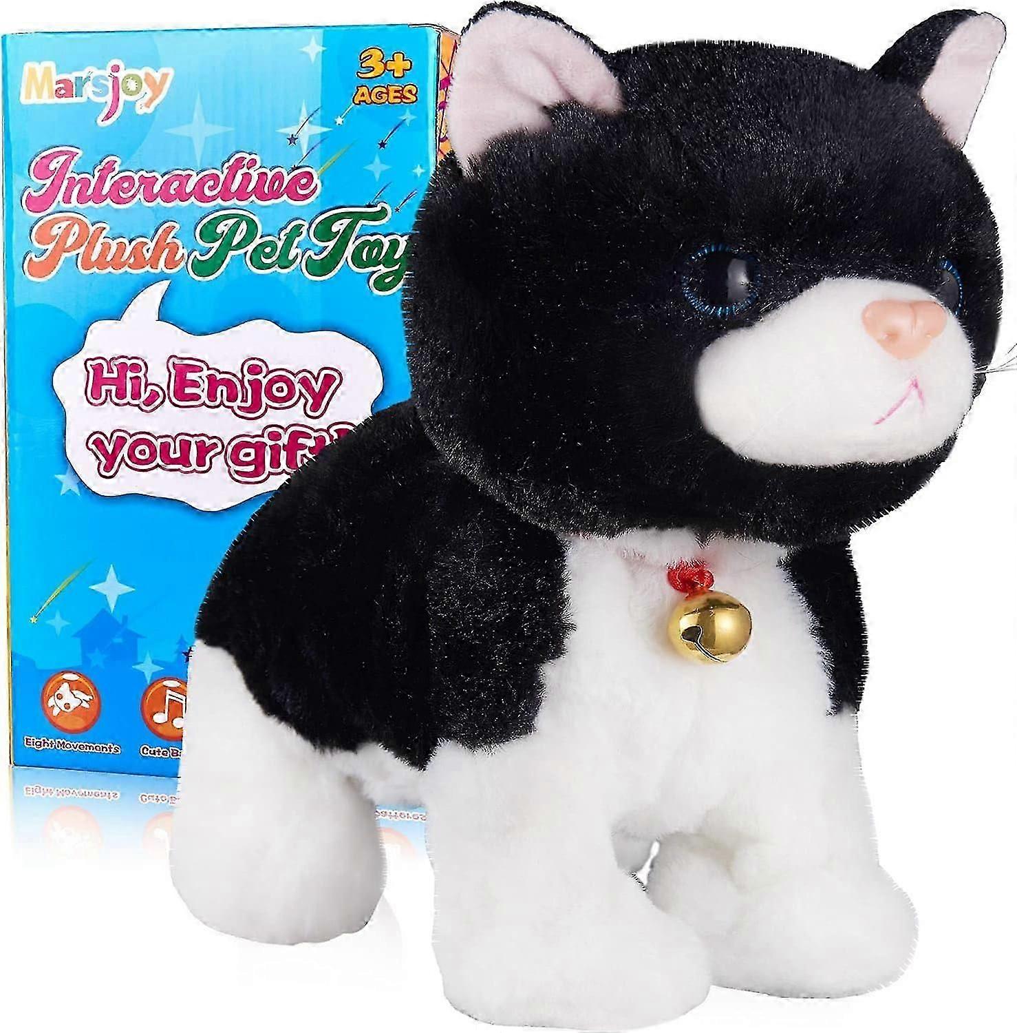 Black Plush Robot Cat Stuffed Animal Interactive Cat Robot Toy, Barking Meow Kitten Touch Control, Electronic Cat Pet Kitty Toy L:12" * H:8" * W:5"