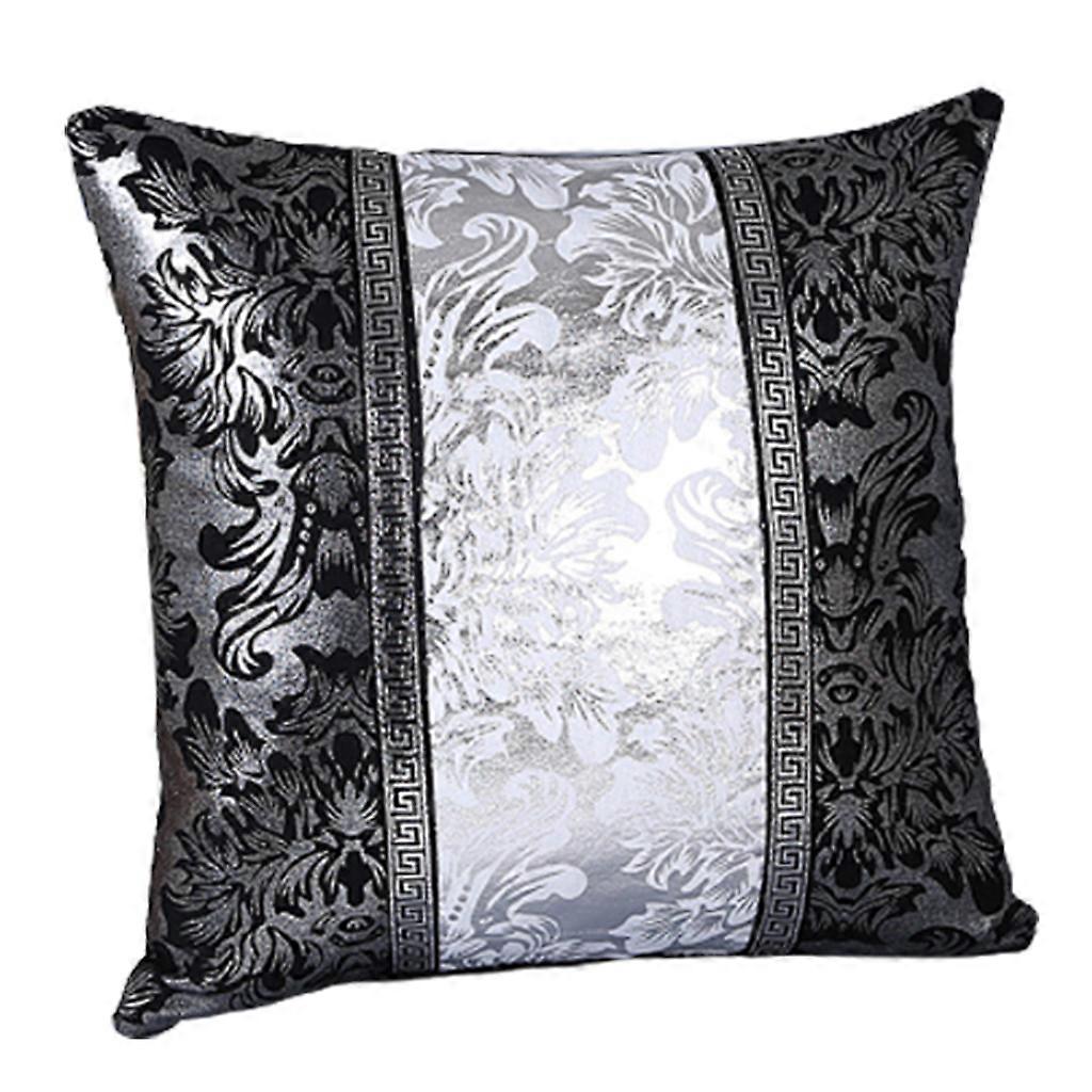 Black Silver Tone Pillow for Case Shiny Floral Print Contrast Square Cushion Cov