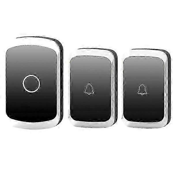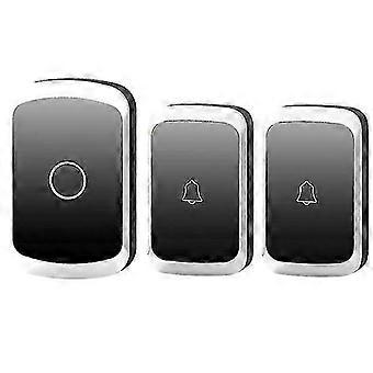 Black Wireless Doorbell DC Battery Powered Waterproof Remote Control 1 Transmitter 2 Receiver
