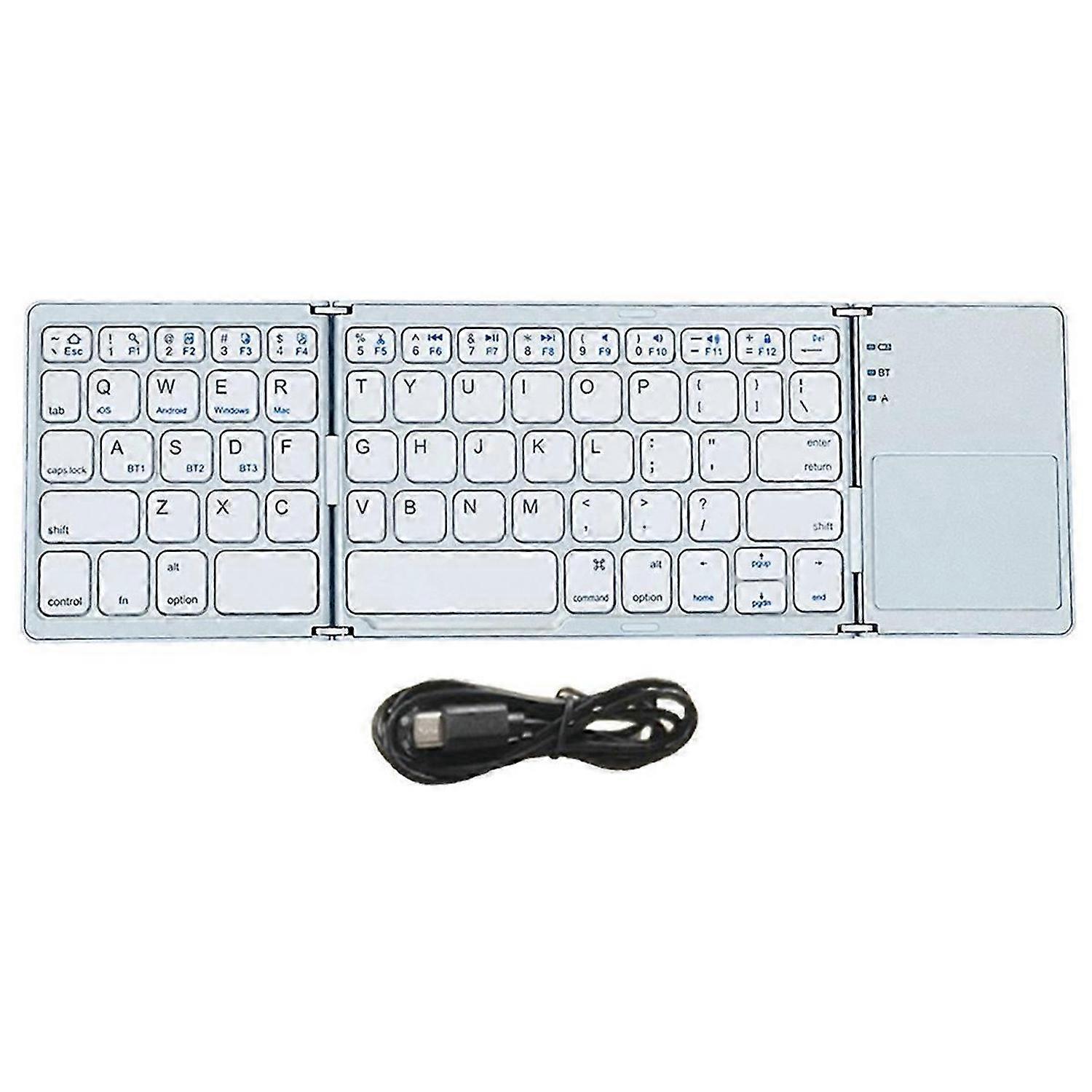 Concave fingertip design for comfortable and gentle typing Scissor foot button structure Compatible with multiple systems and devices Convenient to carry mini foldable keyboard The Bluetooth keyboard provides you with a very comfortable and pleasant typing experience.<br><br>Working current using touchpad:Less than 8.63mA Working current using buttons:Less than 3mA Standby current:0.25mA Keyboard layout:63 keys Working distance:Less than 15m :10 minutes Lithium battery capacity:150mAh Wake up method:any key keyboard Working voltage:3.7V Note:Different Batches May Have Differences In Product Appearance, Color, And Printed Characters, Which Not Affect The Use Colour:Silver Material:ABS<br><br>Package Contents: 1 * keyboard 1 * charging cable<br><br>Only the above package content, other products are not included. Note: Light reflection and different displays may cause the color of the item in the picture a little different from the real thing. The measurement allowed error is +/- 1-3cm.