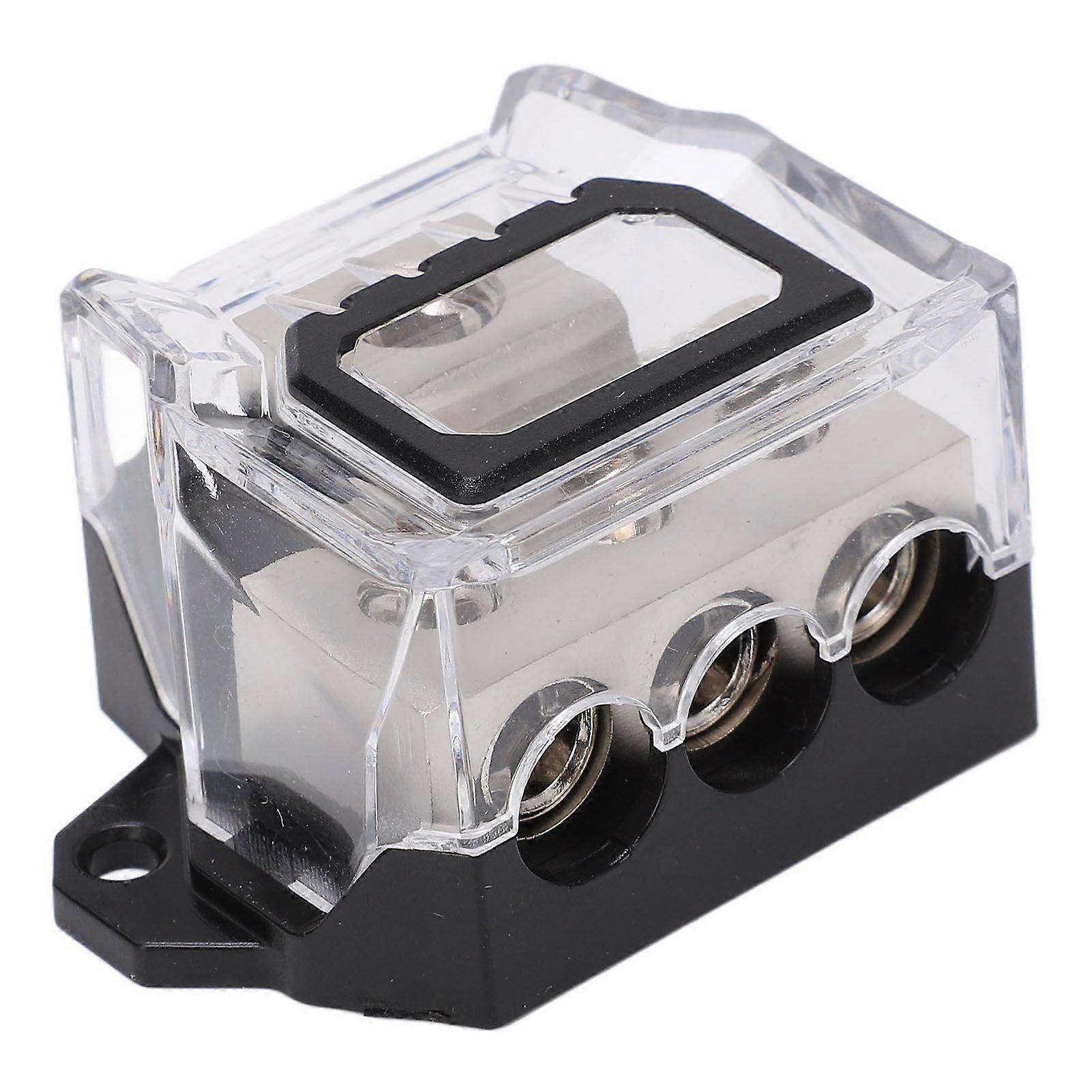1Feature: Equipped with one 0 gauge input and three 4 gauge output wiring holes, will offer complete protection for your car audio system. 2Advantage: Ideal for use with power or ground wires, no need to run multiple wires from batteries or drill redundant grounding points in vehicles. 3Compact: Space saving lightweight design,mini size but high conductivity finish, perfect for hooking up multiple components in your system. 4Durable Material: Zinc alloy nickel plating construction provide excellent signal transfer, which is stable in structure, durable, and high performance. 5Wide Application: Suitable for cars, boats or other vehicles and oversized 1/0 Gauge automotive audio cables, 1/0 Gauge welded cables, and 2/0 Gauge welded cables.