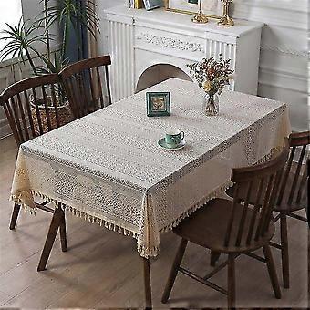 Bohemian Style Woven Tablecloth with Tassel Trim and Non-Slip Design for Elegant Dining Tables