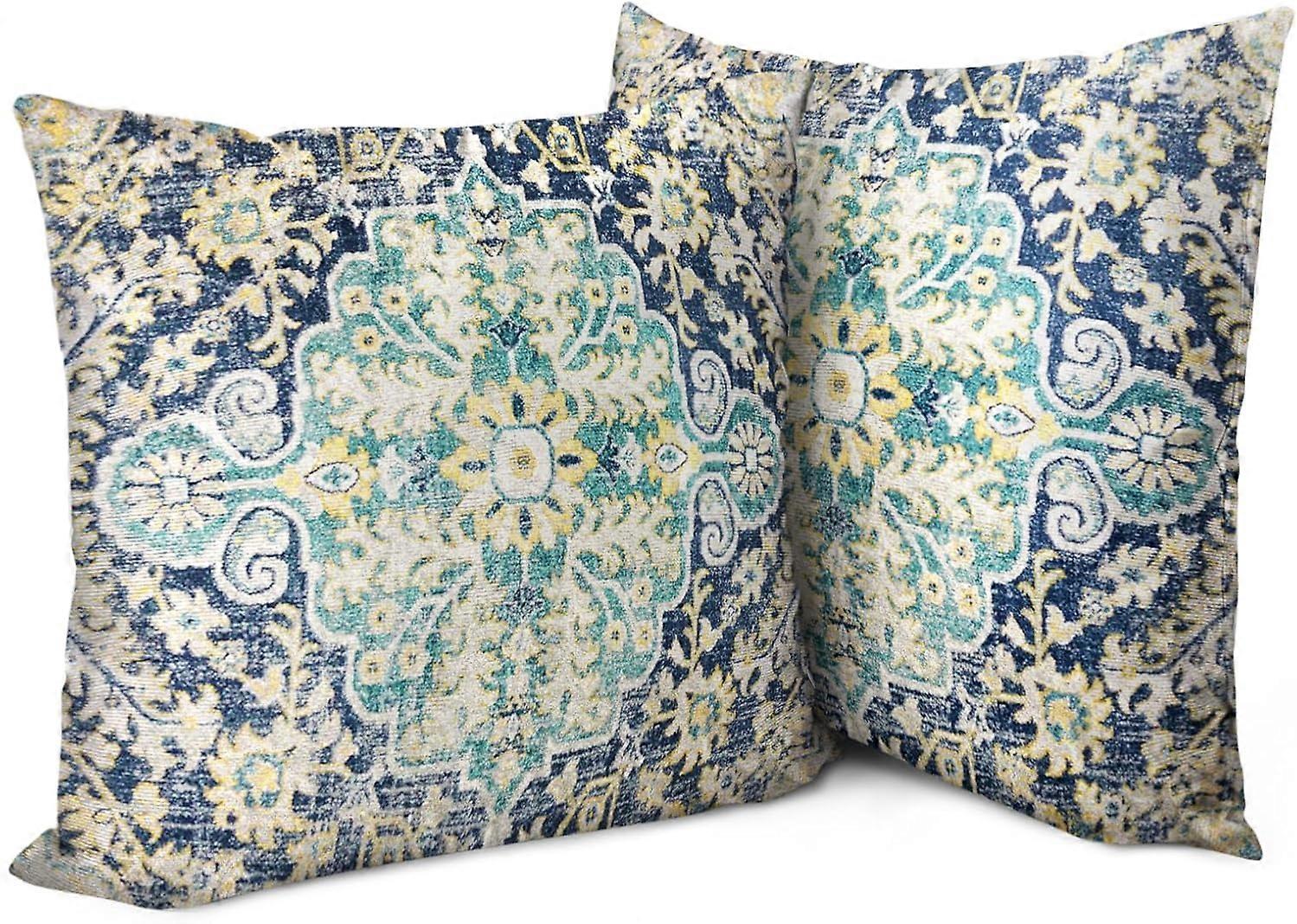 Boho Pillow Covers 18"x18" Set of 2 Vintage Carpet Blue Bohemian Throw Pillow Case Soft Square Decorative Pillowcases for Home Decor Sofa Car Living R