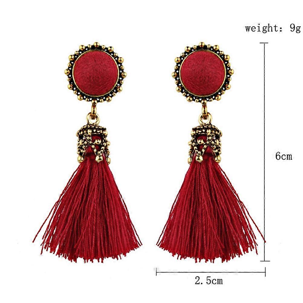 Boho Tassel Earrings Round Shape Alloy Material Ethnic Style 1Pair